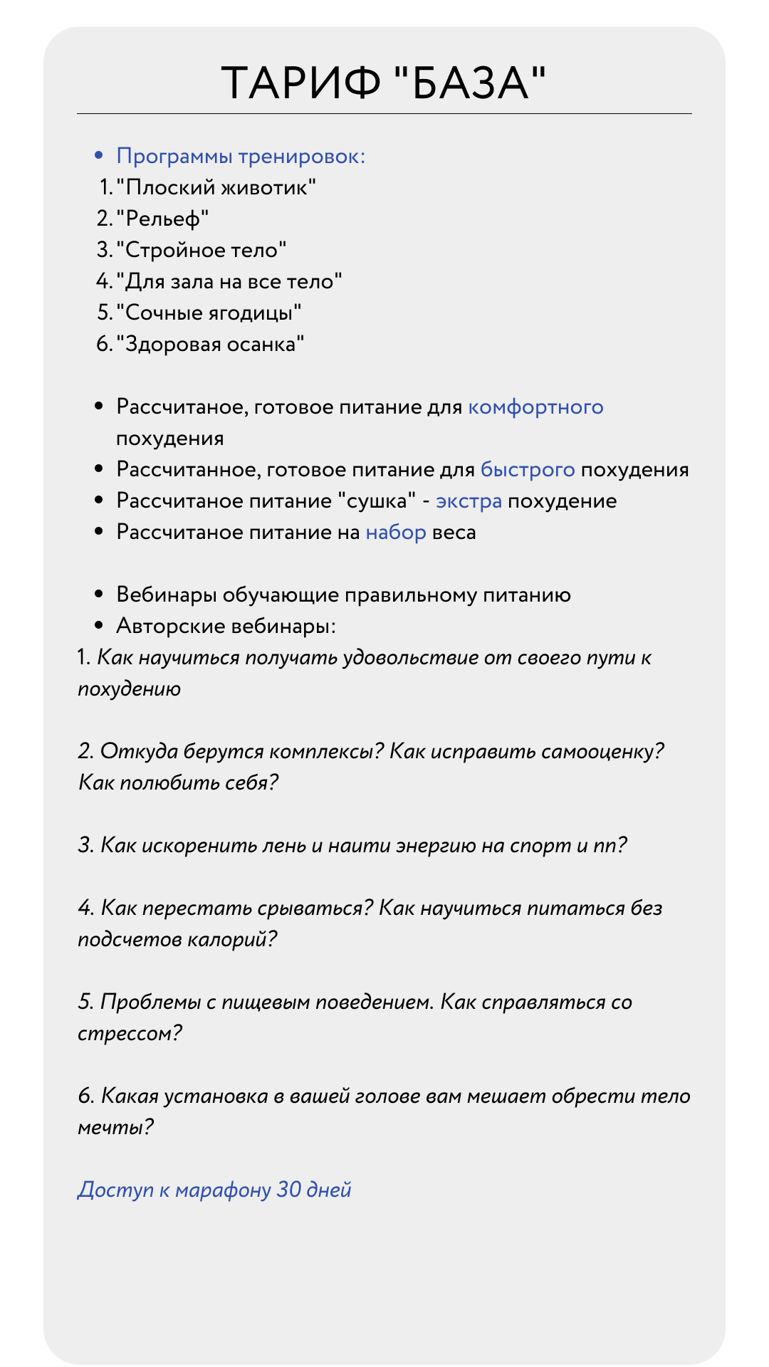 Фитнес тренер, автор 50+ онлайн марафонов по разным направлениям, которые изменили жизни 10.000+ женщин по всему миру. Проводит тренировки на марафоне на следующие группы мышц: ягодицы, ноги, мышцы пресса.